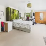 Double aspect room with double glazed windows to side and rear with far reaching views. Radiator. Carpeted. Door leading to en-suite shower room.