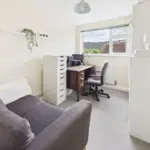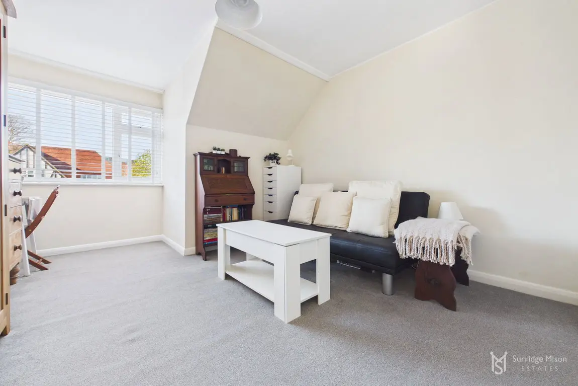 Large roomy area with two skylights. Two built in cupboards, Entry phone system. BT phone point. Carpeted. Radiator.