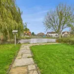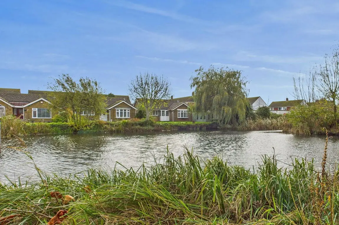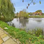 With bright, spacious accommodation throughout along with double glazing and gas central heating, this property has been lovingly modernised to create an ideal home in a sought after spot. Down a private path adjacent to the pond, you reach the entrance porch, and into the entrance hall which has built in storage as well as loft access. Into the kitchen which overlooks the pond as well as having a door to the side, and is well equipped with space for appliances. The lounge/dining room has a feature fireplace and looks onto the conservatory, which has sliding patio doors from two sides to the garden. The main bedroom is a peaceful retreat overlooking the rear garden, and has fitted wardrobes as well as an en-suite shower room. The second bedroom has a feature bay window with views over the pond which can be enjoyed from the fitted seat. There is also a modern bathroom suite.