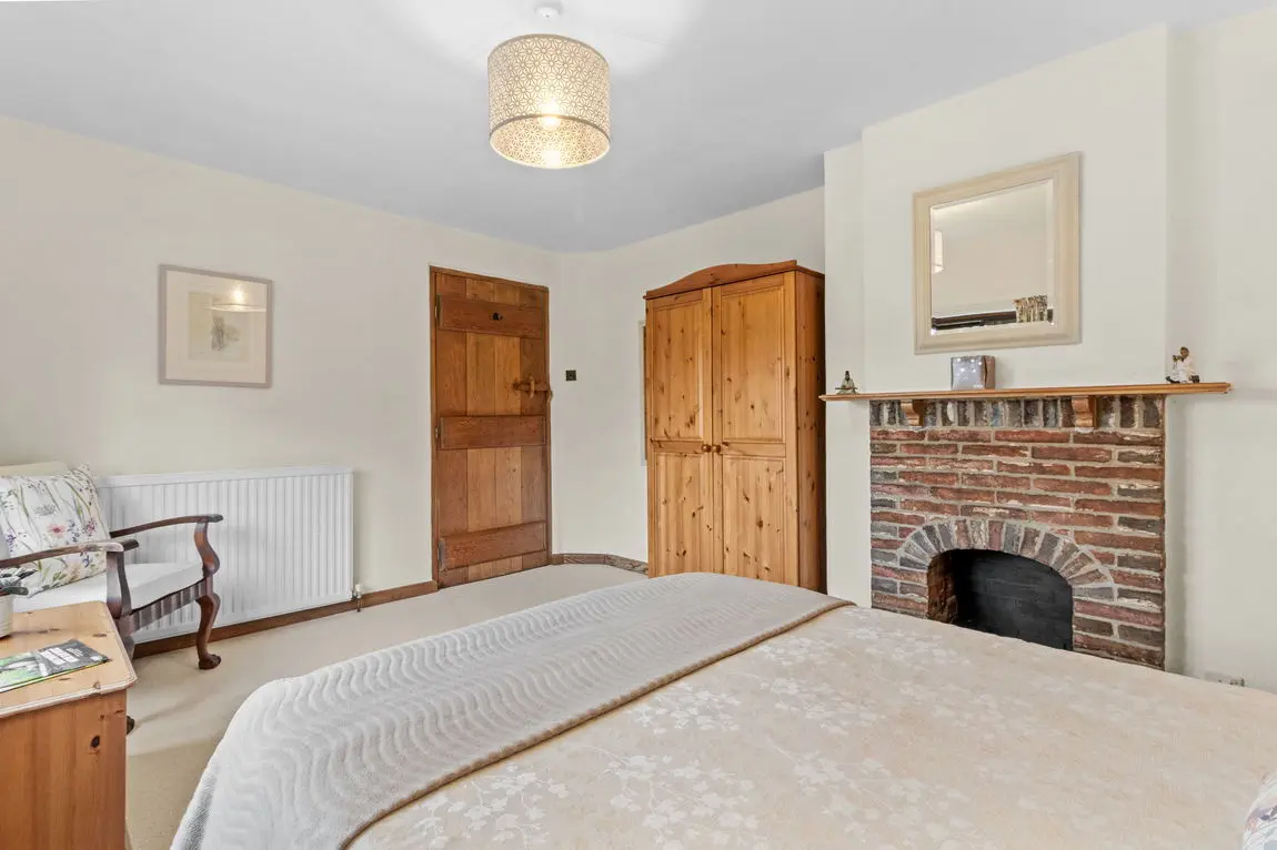 Glazed windows with secondary glazing to front. Fireplace with tiled hearth and brick surround. Radiator.