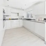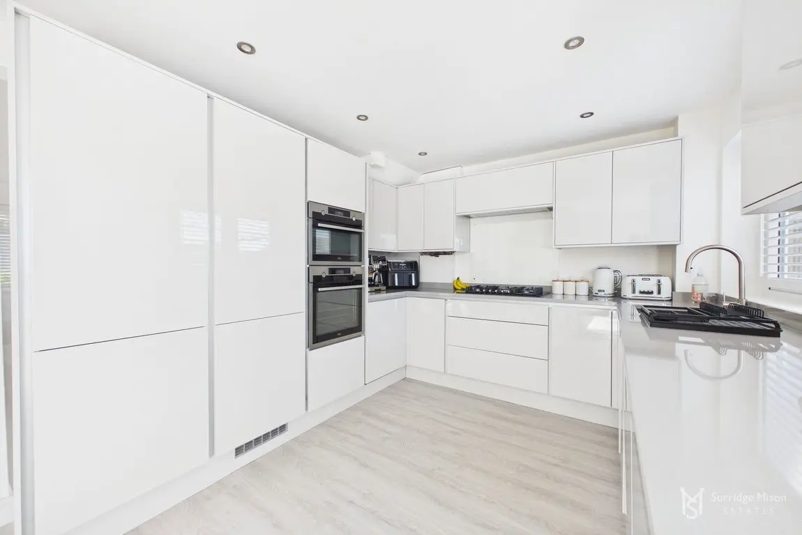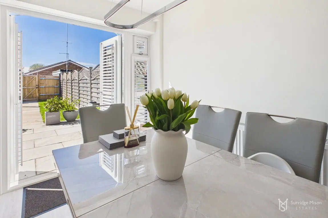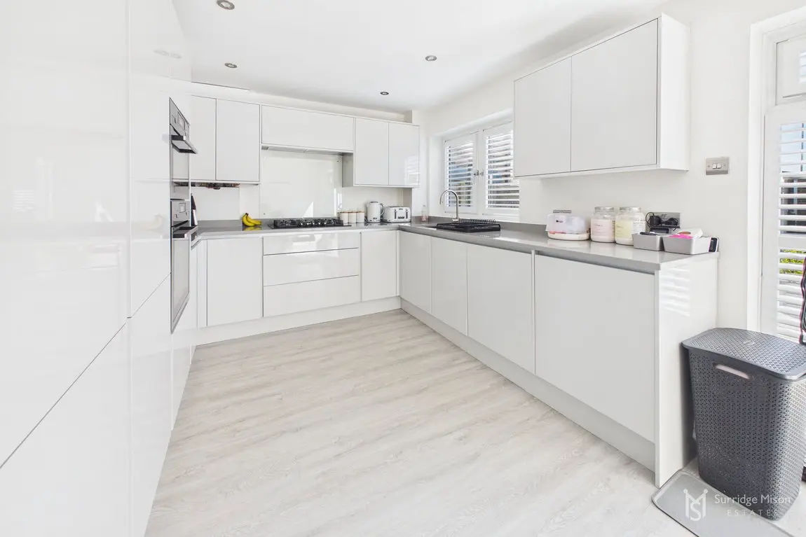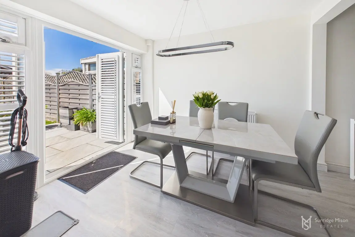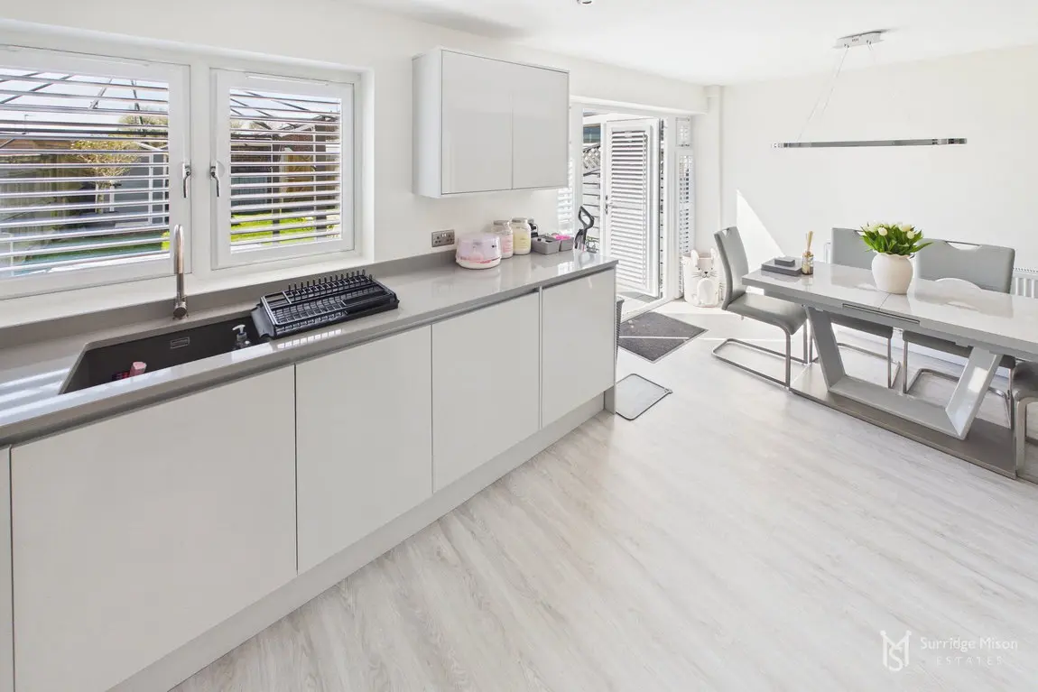 The current owners have meticulously refurbished and re-configured the home to create a bright and spacious retreat ready for any new owner to move in and enjoy. The accommodation begins with an entrance hall with a handy ground floor cloakroom and a new casement front door. Into the spacious lounge which overlooks the front with views of the nearby pond, and has an understairs storage cupboard. The entirety of the ground floor has freshly laid matching flooring. The lounge is open to the stunning kitchen/dining room. The owners removed an existing wall down to create this large kitchen/dining room, an incredibly bright space with a window and French doors leading to the rear garden, with fitted shutters. The kitchen is newly fitted, with integral appliances and Quartz work surfaces.