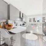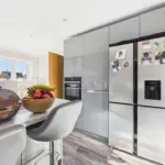 The kitchen/breakfast room is superbly equipped with modern units and integral dishwasher, high quality built in appliances include AEG induction hob and Neff 'hide and slide' oven and space for a large double fridge/freezer, hideaway microwave cupboard and bin storage.