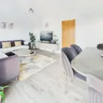 The accommodation comprises of entrance hallway with hard wearing vinyl flooring which matches through to the cloakroom, kitchen, utility and study and having deep built in under stairs storage. The cloakroom is spacious enough for coat and shoe space and is refitted in a modern style.