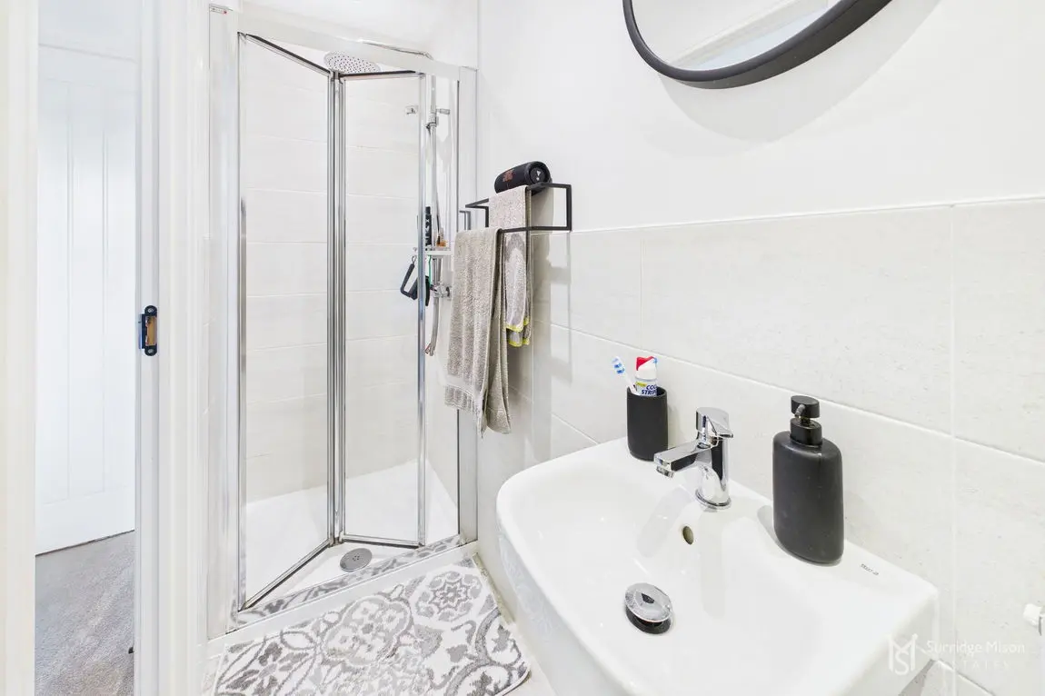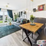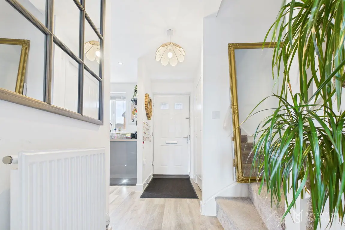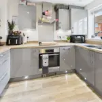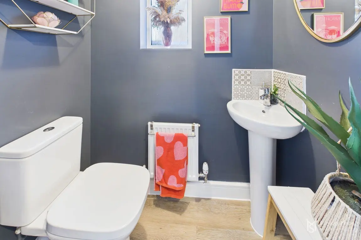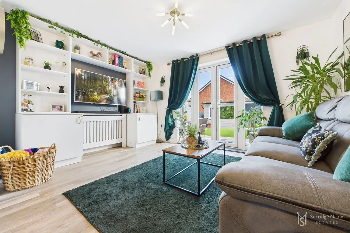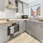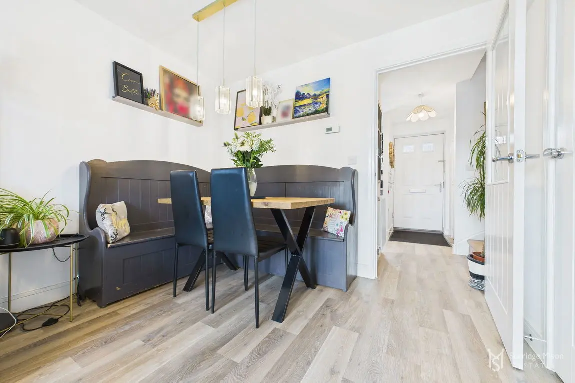 The inviting living space flows seamlessly into a sleek, grey gloss kitchen fitted with high-quality integrated appliances—the perfect space for cooking and entertaining. With a thoughtfully designed layout, this home features a family bathroom, a luxurious en-suite, and an additional ground floor WC, ensuring daily comfort and privacy for all residents.
