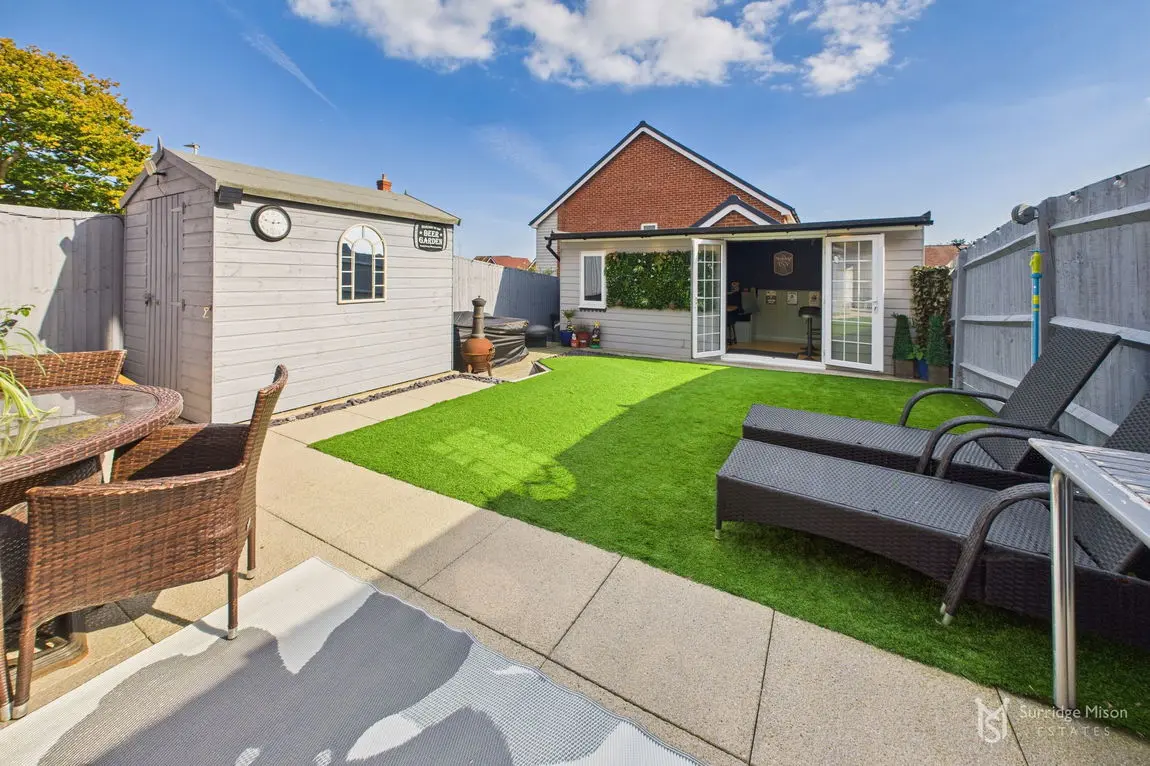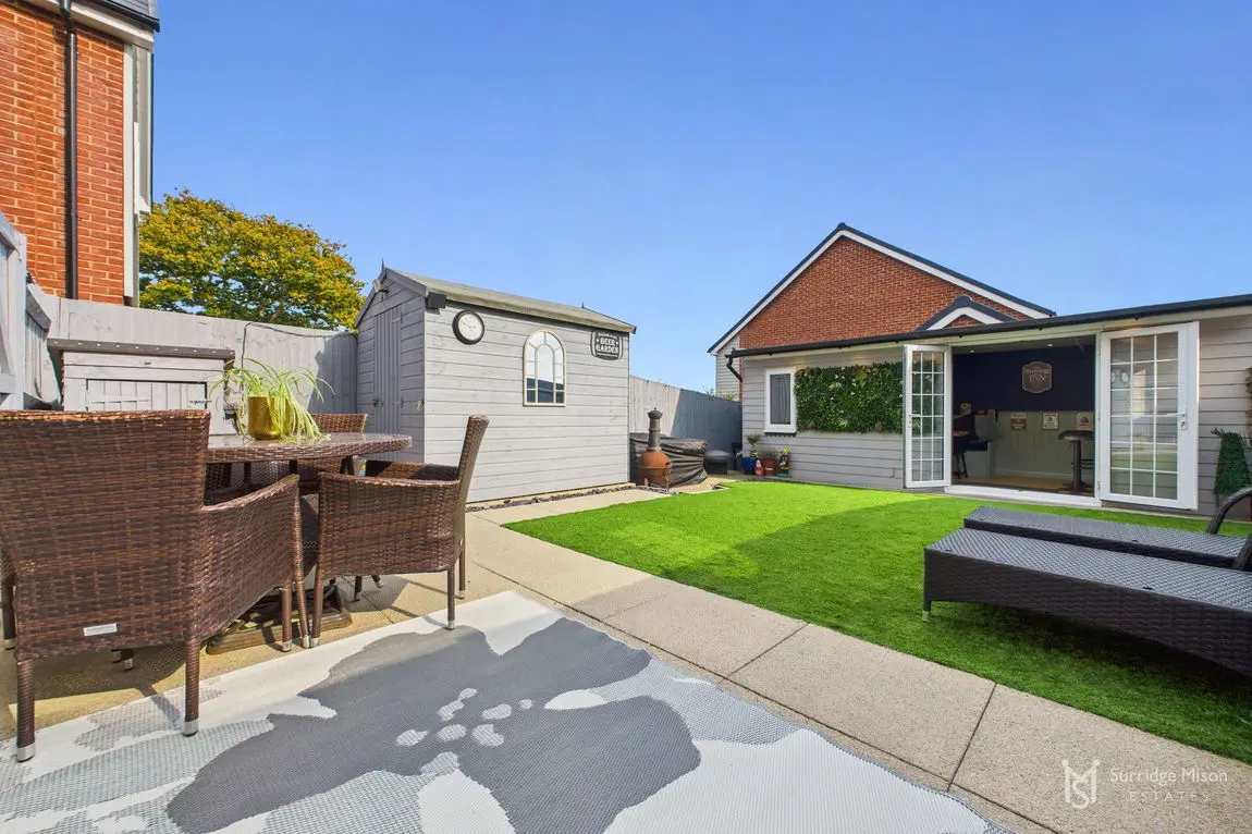 A high specification two bedroom semi-detached house with a desirable garden room and office. The property features grey gloss fitted kitchen with a range of integrated appliances, lounge/diner with doors to a sunny garden, ground floor WC, two double bedrooms, family bathroom and en-suite shower room. This smartly presented home also comes with off road parking for two cars.