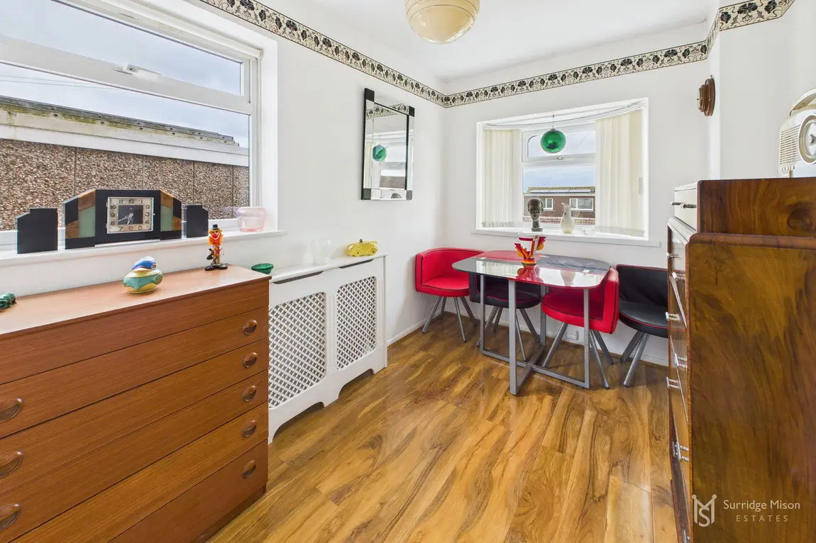 Double aspect room with double glazed windows to front and side. Two radiators. Laminate flooring.